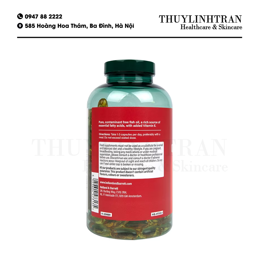 Sản phẩm Dầu cá Omega-3 Fish Oil 1500mg của thương hiệu Holland & Barrett – thương hiệu về chăm sóc sức khỏe hàng đầu Anh Quốc, được sản xuất trên nền tảng công nghệ Opti - Pure này do đó luôn nằm trong danh sách khuyên dùng của những người theo đuổi lối sống healthy, chú trọng về chăm sóc sức khoẻ chủ động.
