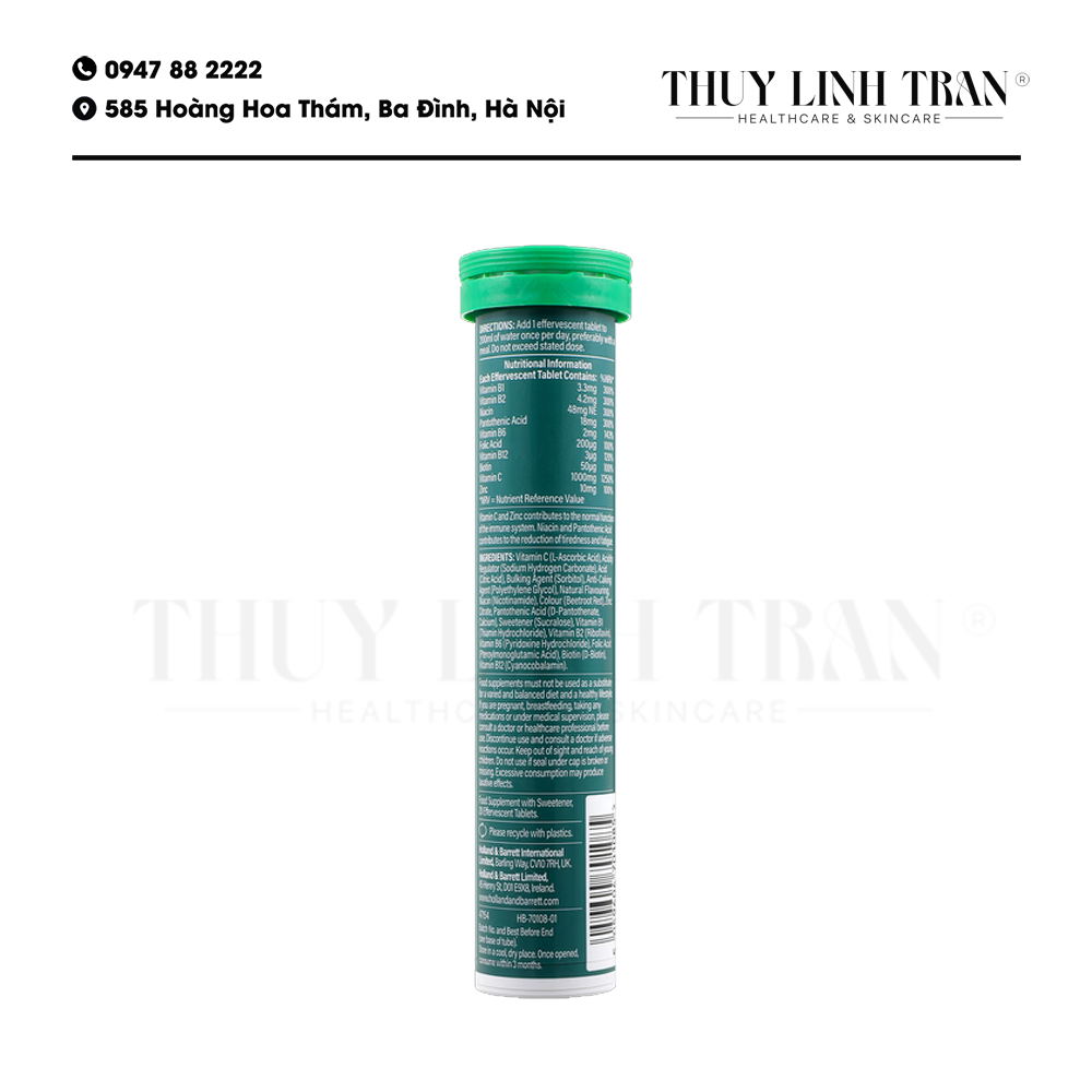 Chỉ cần 01 viên sủi VITAMIN C & ZINC Holland & Barret mỗi ngày, cơ thể bạn sẽ được bổ sung hàm lượng vàng 1000mg VitaminC + 10mg Zinc & vitamin nhóm B – giúp tăng năng lượng, tăng cường hệ thống miễn dịch và đem lại sức sống tràn đầy cho làn da của bạn.