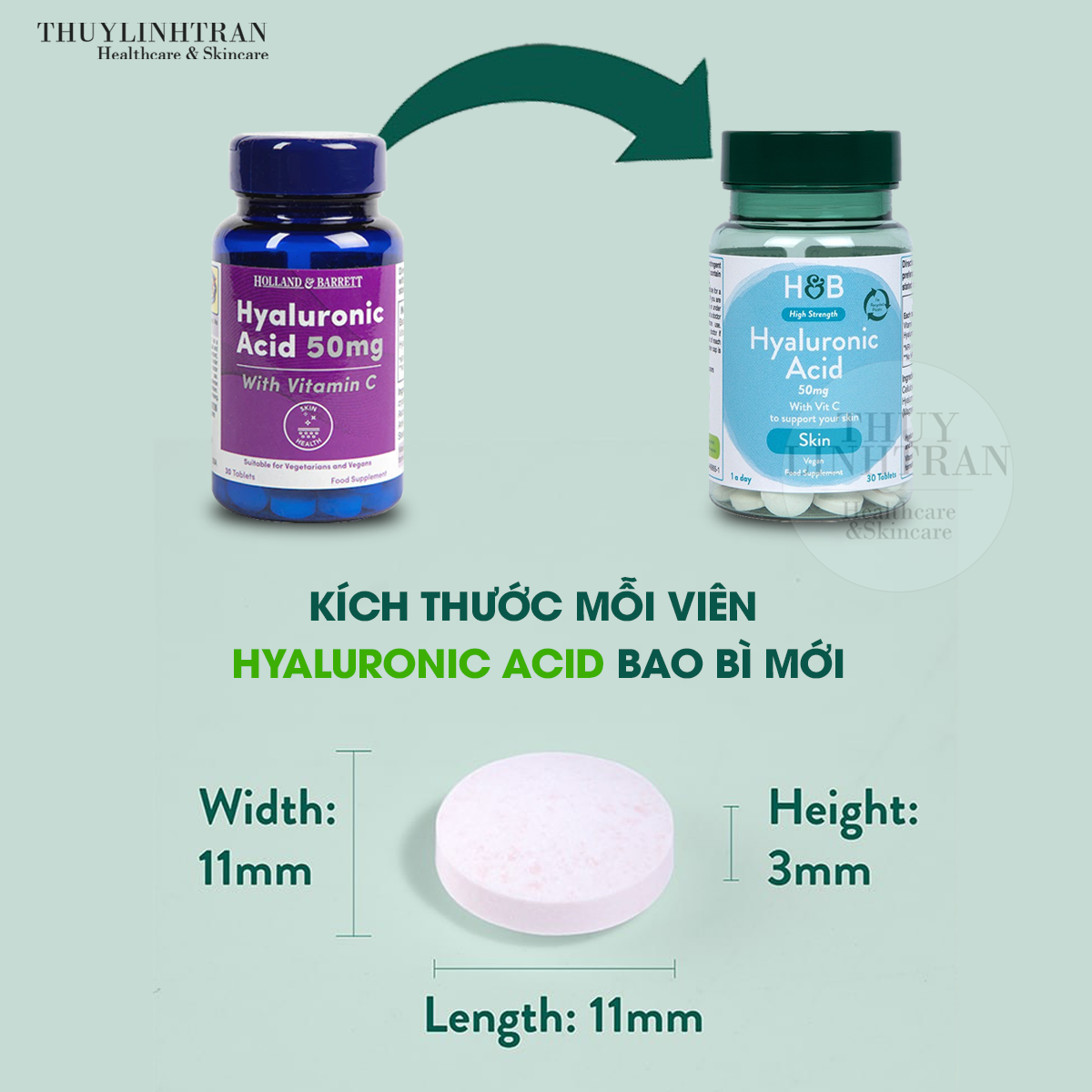 Với những tín đồ làm đẹp thì không thể bỏ qua viên uống Hyaluronic Acid 50mg with Vitamin C: phân tử Hyaluronic Acid kết hợp với Vitamin C giảm các dấu hiệu lão hóa, kích thích quá trình tăng sinh collagen và elastin, giúp da dưỡng ẩm vượt trội, tăng độ đàn hồi, săn chắc, khắc phục tình trạng chảy xệ, trả lại làn da căng bóng. Bảo vệ làn da nàng khỏi những tác hại của ánh nắng mặt trời và có thể làm mờ sự đôi màu da.