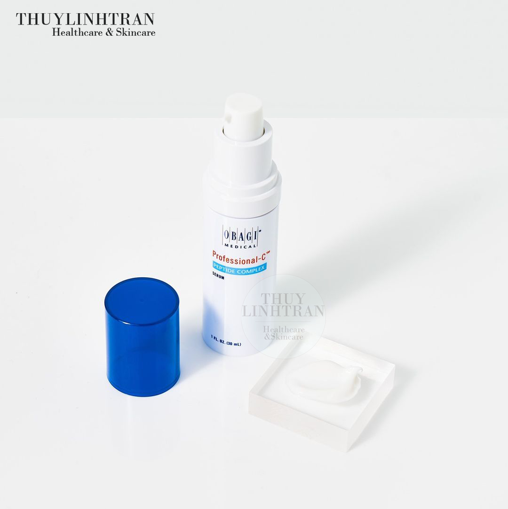 Bước 2: Xịt 4-5 giọt kem tinh chất phục hồi sáng da ngăn lão hóa Obagi Peptide Complex Serum thoa đều lên toàn bộ khuôn mặt, tránh vùng mắt và môi.