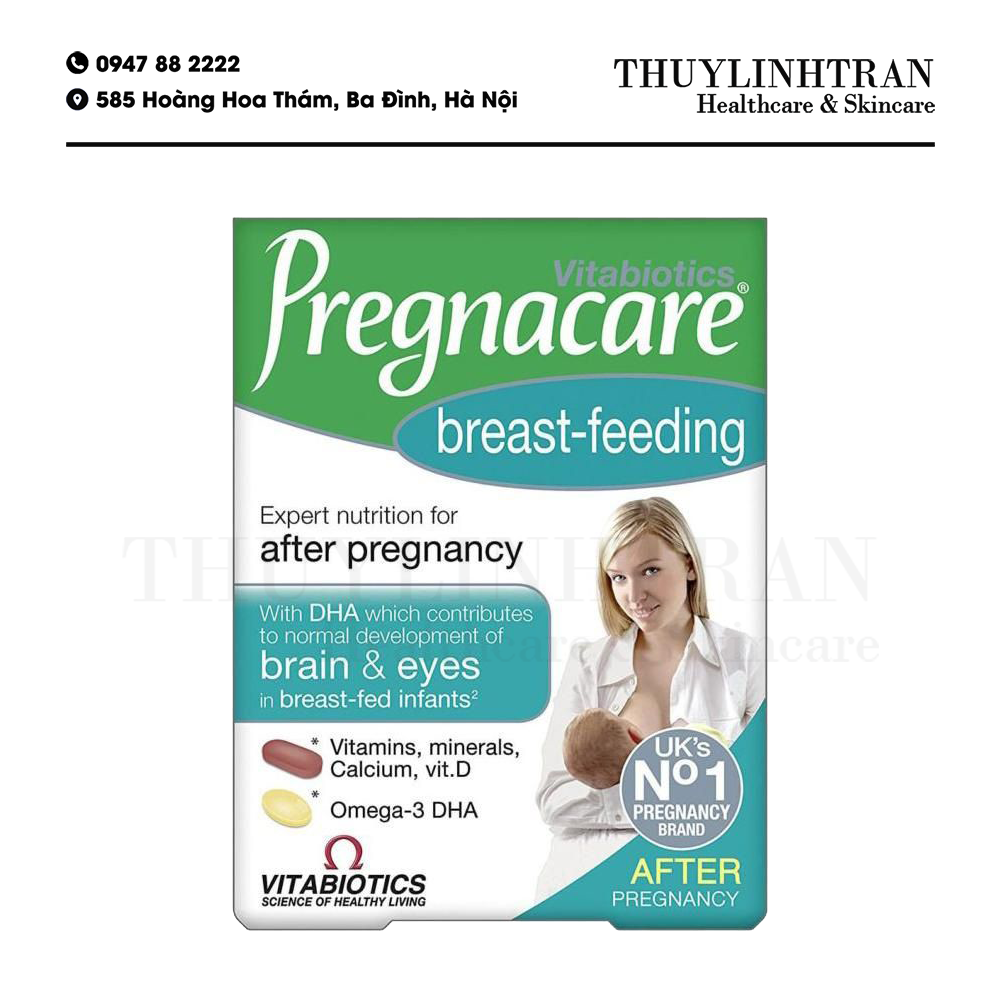 - Hộp có 84 viên trong đó có 56 viên Pregnacare Breast-Feeding (viên nén màu nâu) + 28 viên Omega 3 (viên nang màu vàng).