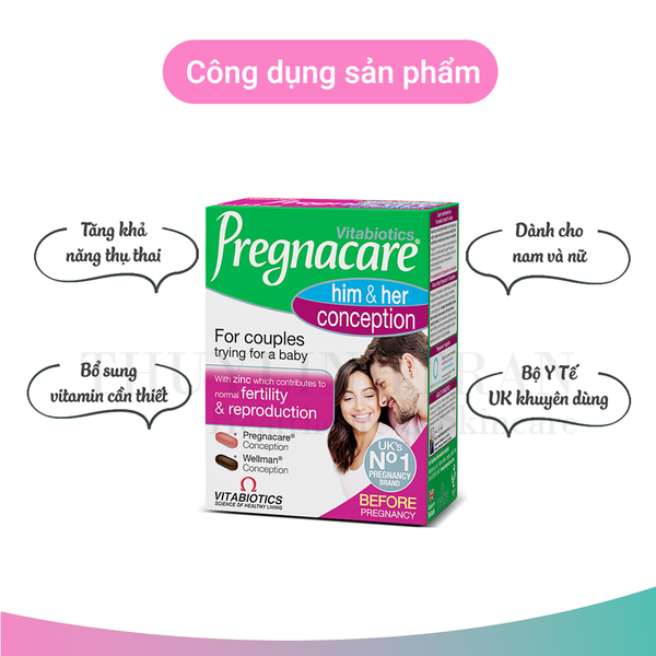 - Viên uống tăng khả năng thụ thai Pregnacare Him & Her Conception là sản phẩm cung cấp các dưỡng chất cần thiết cho cơ thể, giúp quá trình thụ thai nhanh và dễ dàng hơn. Pregnacare Him & Her Conception được phát triển trên cơ sở nghiên cứu khoa học để hỗ trợ các nhu cầu dinh dưỡng cụ thể ở cả nam và nữ.