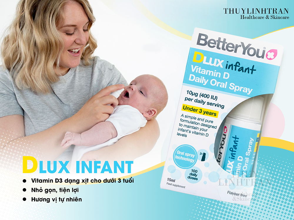 Để bé phát triển khỏe mạnh, ba mẹ cần tắm nắng đúng cách cho bé hoặc cách đơn giản hơn là dùng ngay Vitamin D3 dạng xịt vô cùng tiện lợi VITAMIN DLUX D3.